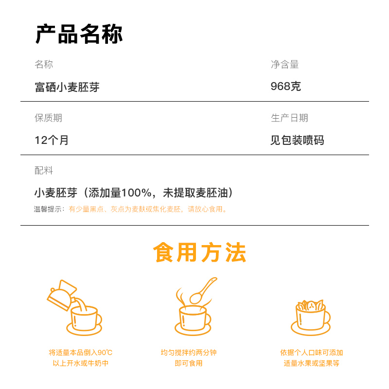 唐人福富硒原味小麥胚芽968g